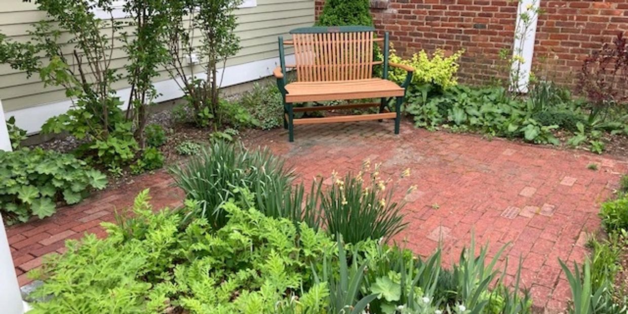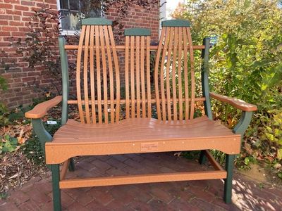 Months ago, when the family reached out to me with another very generous gift offer, I was not surprised in the least. A bench has been purchased and the plaque engraved and mounted to recognize Dr. Eckhardt. It will sit in the Rita Braskie Memorial Garden and occasionally move to the front porch for Farmers Markets. It will be used in this place of reflection and as a community gathering place during and after library hours.
