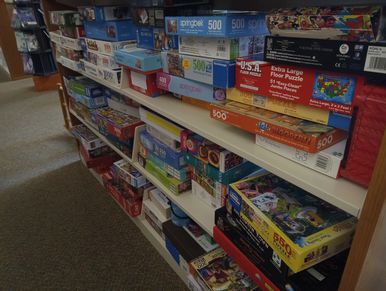 Libraries aren't just about books and programming. We also have board games, card games and puzzles for you to take home and enjoy. We always have coloring pages and colored pencils for you to enjoy. We have adult coloring books, crosswords and Suduko books available all the time for use in the Library.